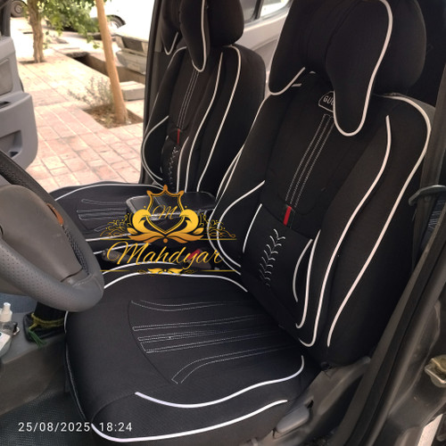روکش صندلی کوییک و تیبا2پارچه جودون برزنت سنگین مشکی بند سفید