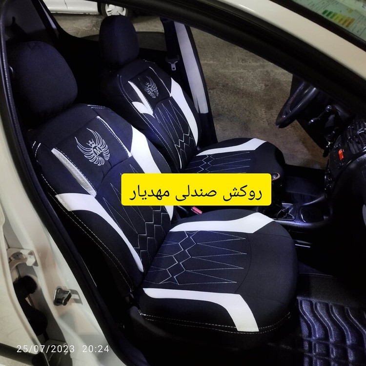 روکش صندلی206.207جودون سنگین مشکی گلدوزی سفید