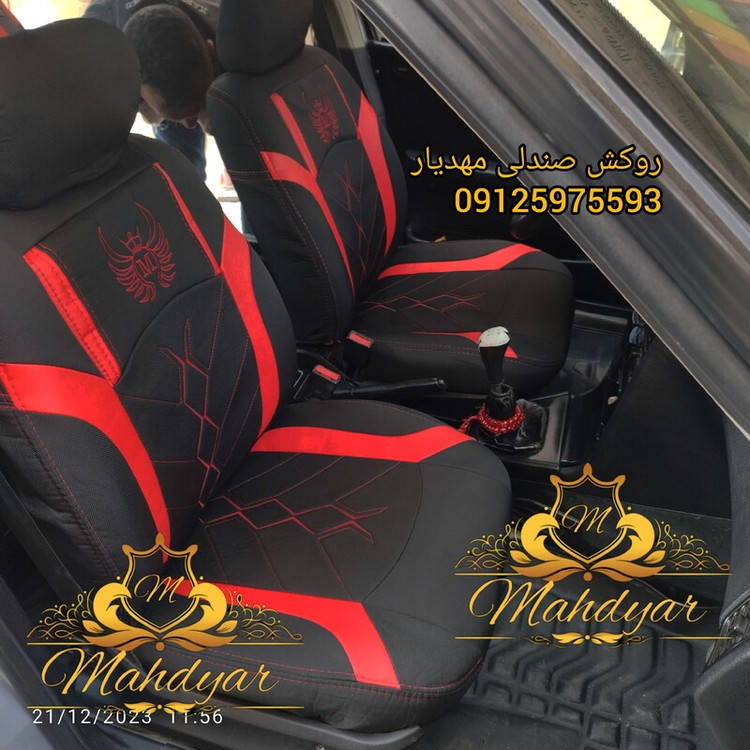 روکش صندلی پرشیا قدیم و پژو 405و آردی پارچه جودون سنگین رنگ مشکی بغل چرم قرمز..