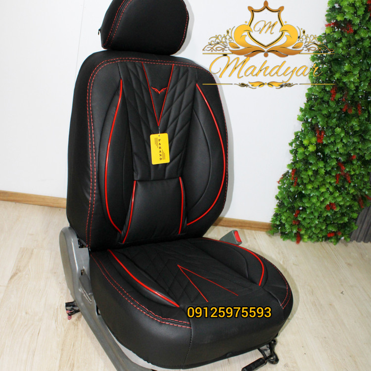 روکش صندلی پژو پارس قدیم مشکی قرمزچرم طبی سوپر VIPدرجه یک با الگوی عالی برند پرند روکش