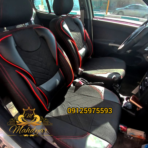 روکش صندلی پرشیا قدیم و پژو 405 پارچه برزنت سنگین رنگ مشکی با دوخت قرمز